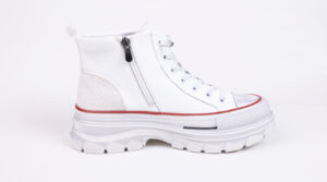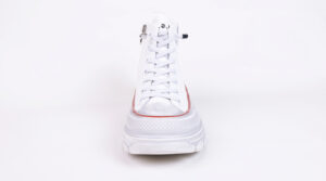 靴紐を結ばないレースアップスタイルハイカットスニーカー。サイドにファスナーがついているので着脱もスムーズに出来ます。コーデの主役になるデザインで、足元にボリューム感を出したい方におすすめです♪インソールはしっかりとしたクッション性があり長時間歩いていても疲れにくい。
