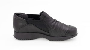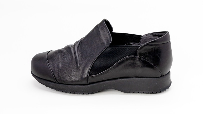 両サイドにゴムを入れることでスッと履けて脱ぎ履きらくらく♪