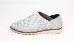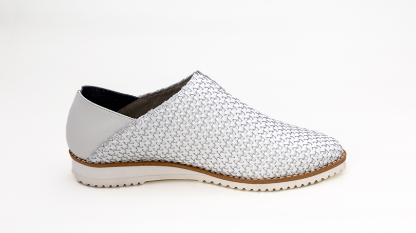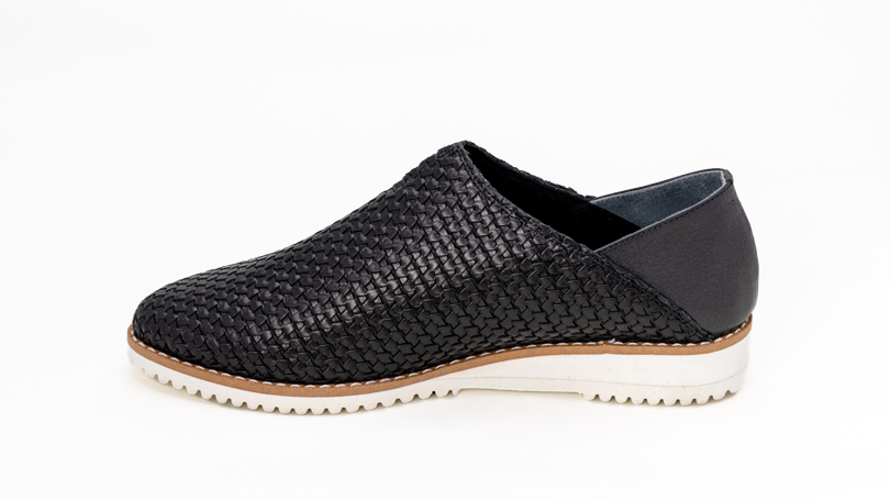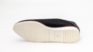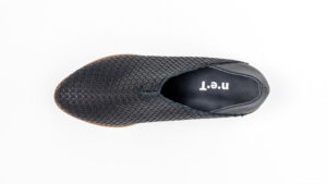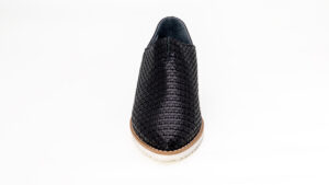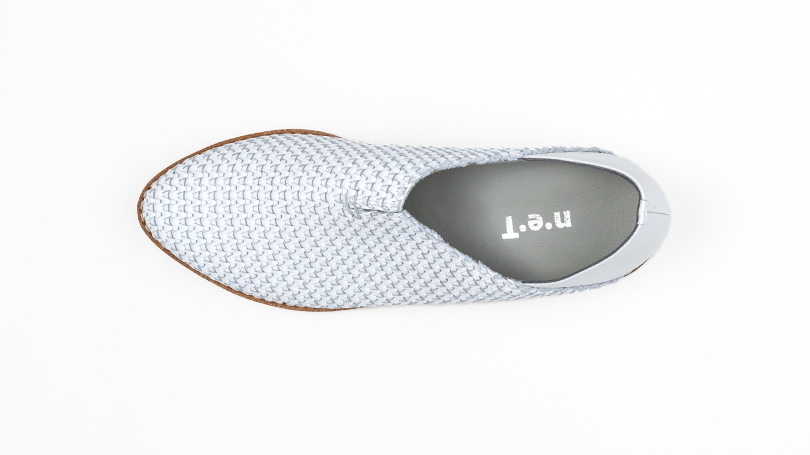 柔らかい本革を編み込んだメッシュは、型崩れがしにくいように裏あてがされています。