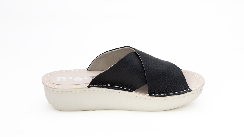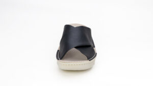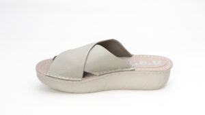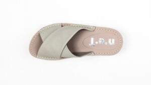 上品なクロスベルトデザインで、足元をすっきり見せてくれるレザーオープントゥサンダル。
