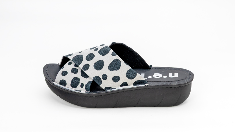 歩行時の衝撃を吸収してくれるクッション性の良いタルトソールで、快適な履き心地。