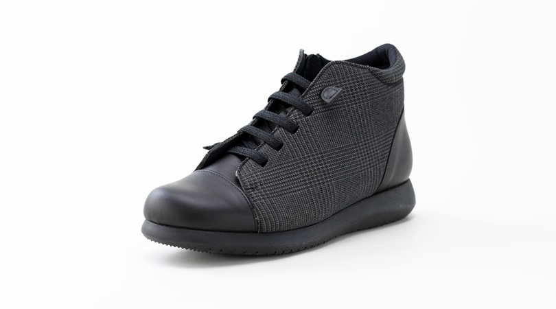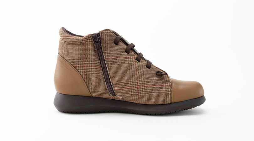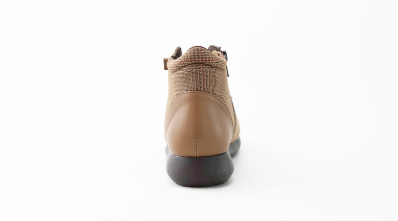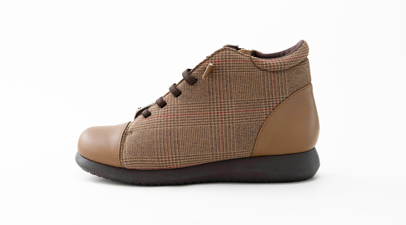 チェック柄が目を引く、カジュアルショートブーツ。ゴム紐で足にフィットし、内側ファスナーで脱ぎ履きも簡単です。滑りにくく、ゴム質の高いラテックスソールで足への負担もかかりにくく優しい履き心地です。